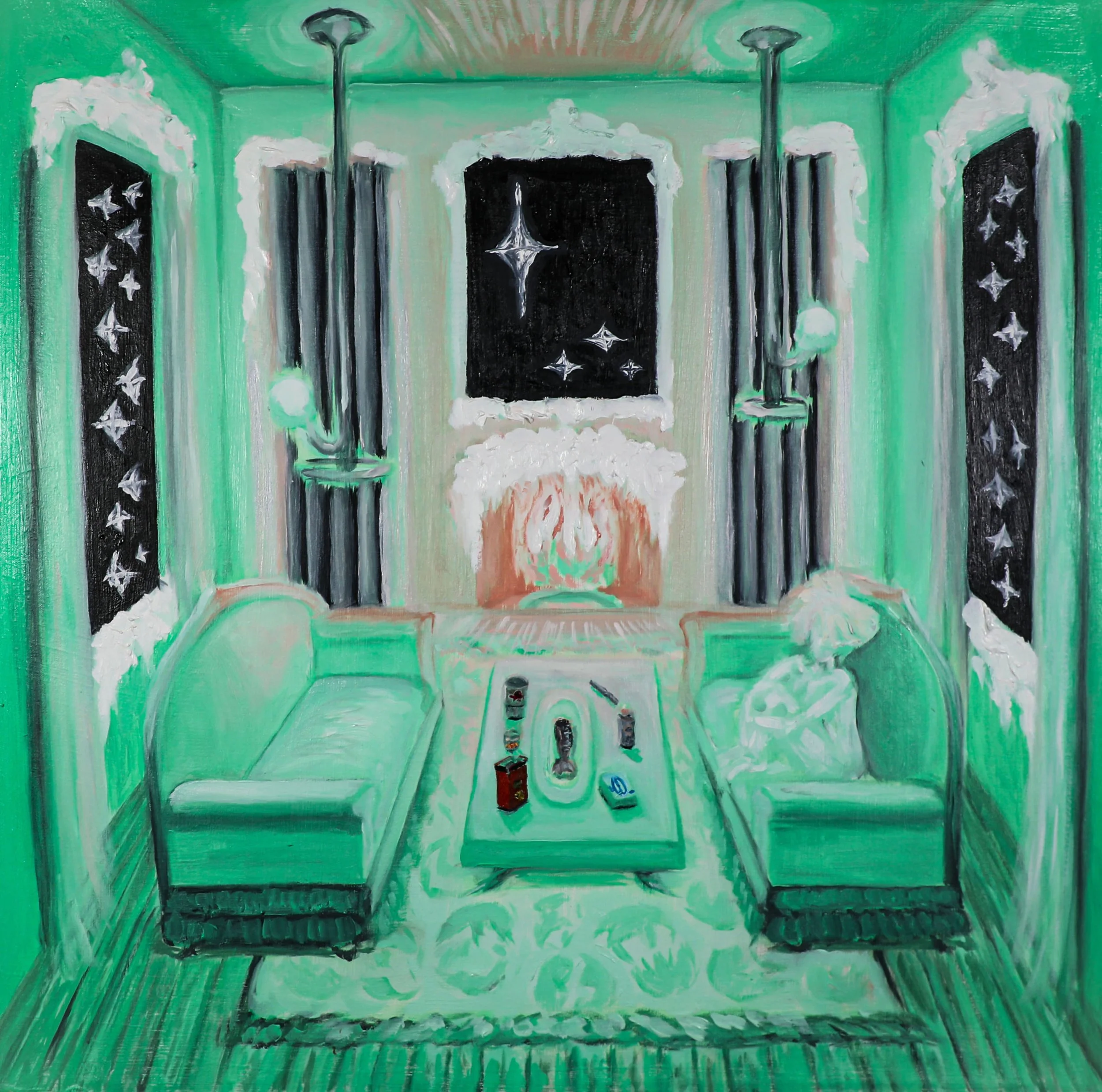 Waiting Room/ Suspended Offering, 2023, 16 x 14 inches, oil on canvas