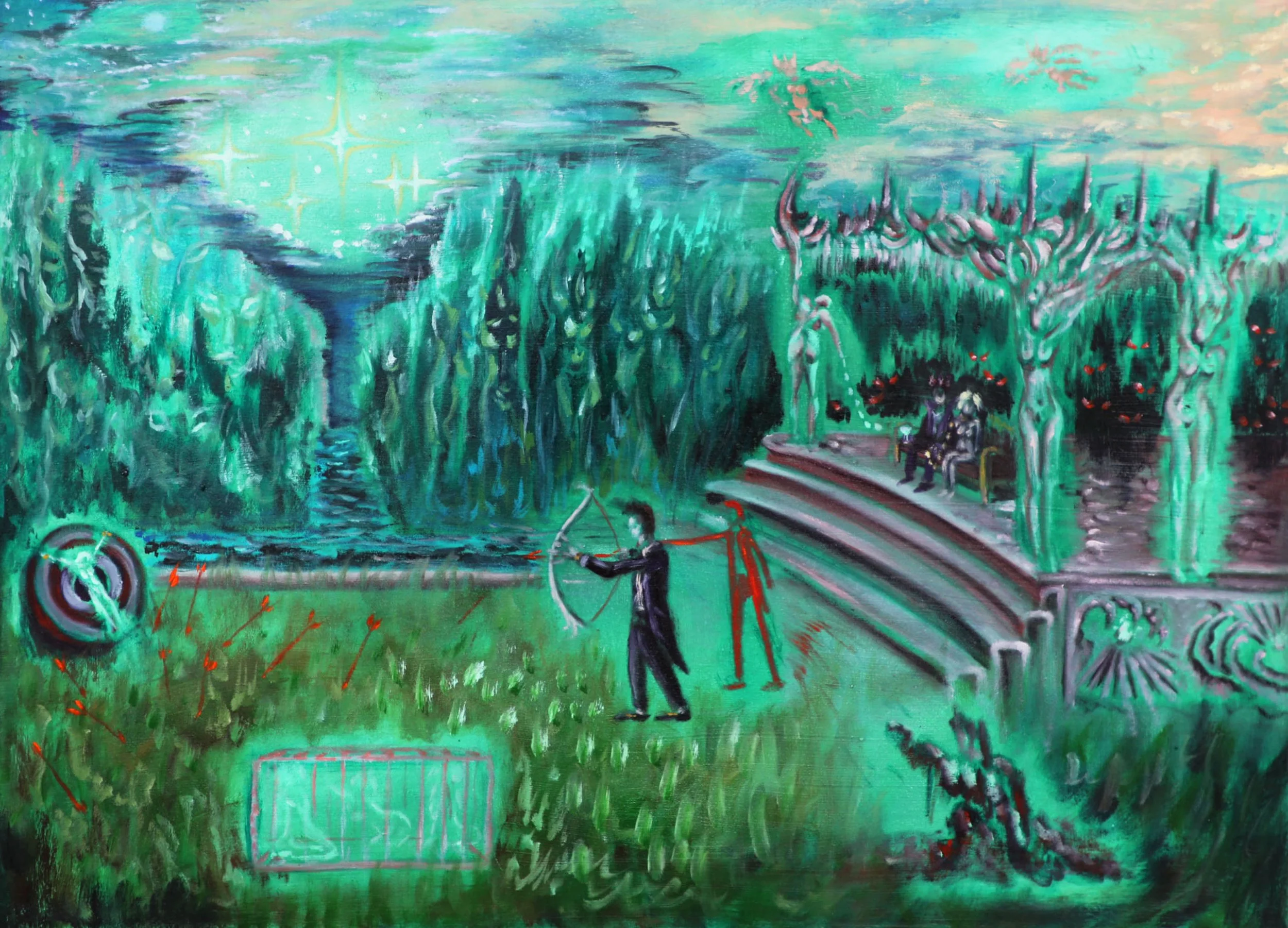 Jumanji XXX/ Escape Through Transmutation, 2024, 30 x 40 inches, oil on canvas
